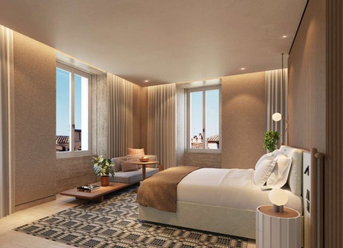 - Highlights: Irene Brin rooftop restaurant, Roman-inspired spa, curated art collection