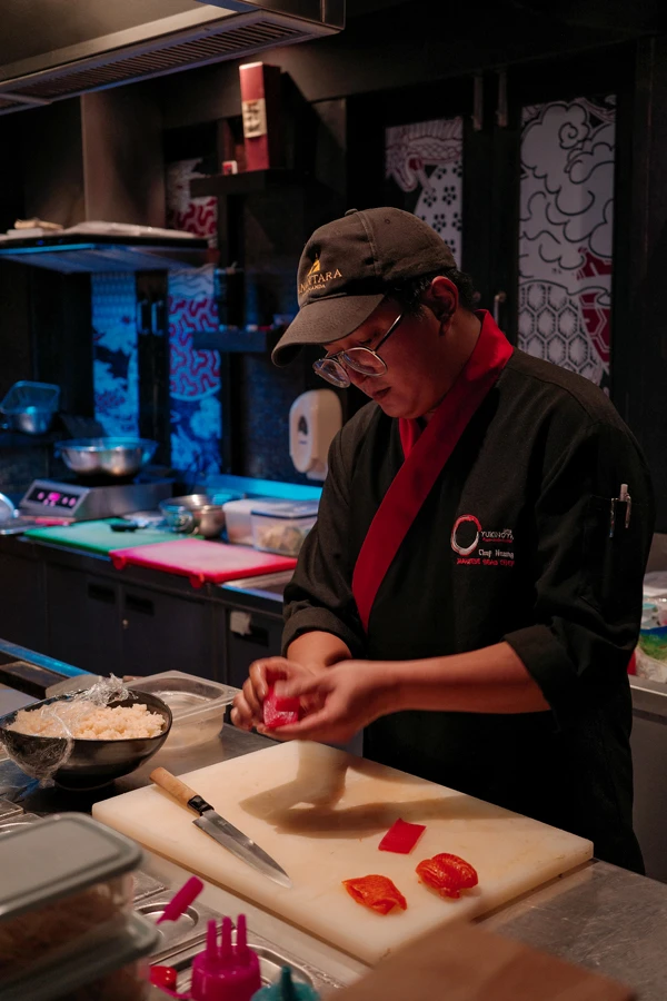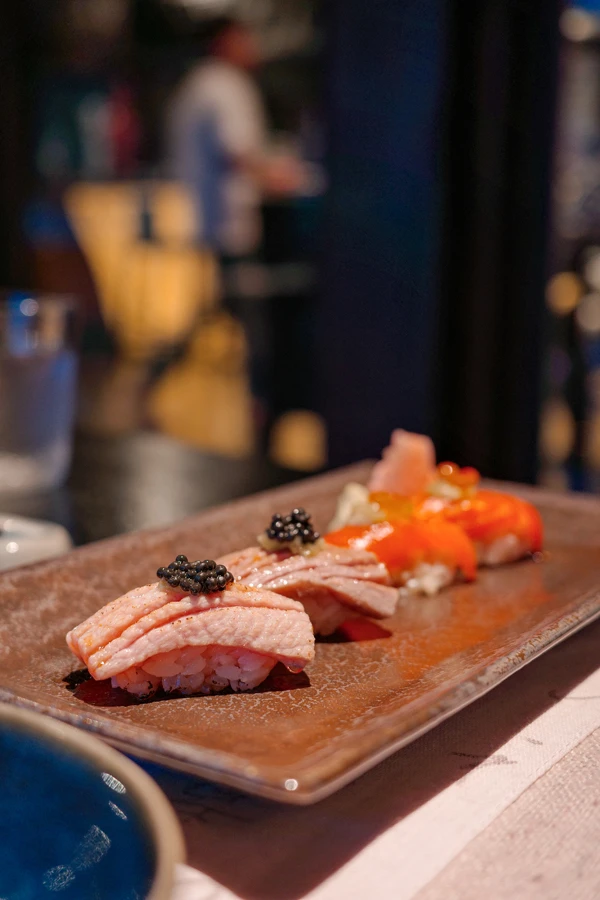 - Masterful teppanyaki and sushi showcasing knife skills honed in Japan