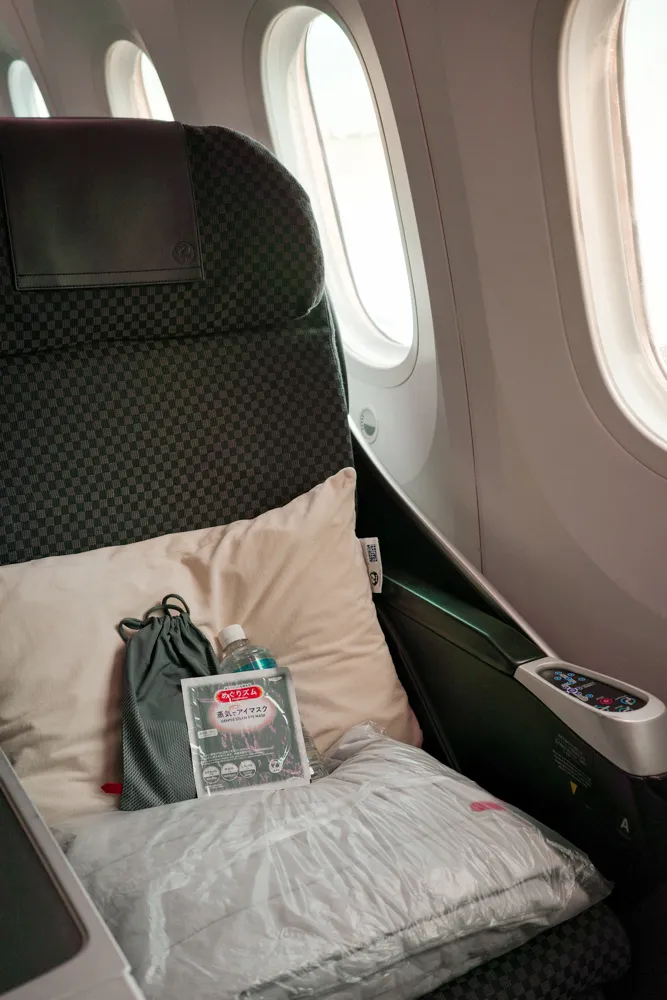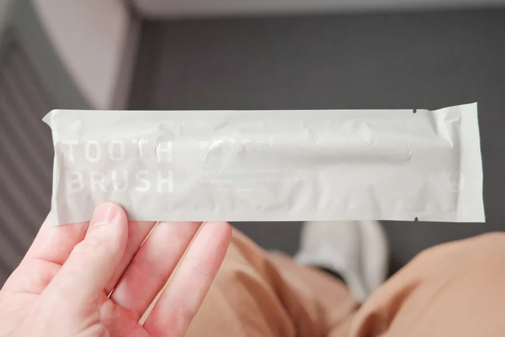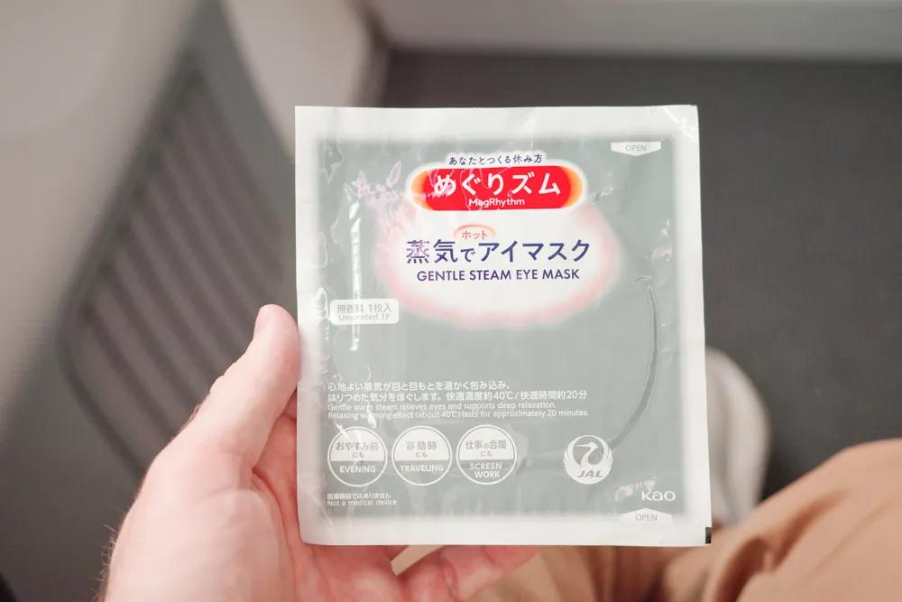 The amenity kit was a pleasant surprise. Japan Airlines clearly sweats the small details. Inside, I found a gentle steam eye mask, a toothbrush, a regular eye mask, quality headphones, and slippers. These thoughtful amenities set the tone for what would be an excellent Tokyo Business Class experience.