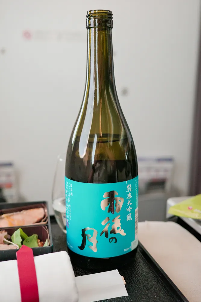 I wasn’t planning to indulge in alcohol during the flight, but when the flight attendant described the sake selection with such enthusiasm, I couldn’t resist. I tried the Fukucho Junmai Daiginjo “Shokafu” from Hiroshima (15% alcohol), and wow. It was incredibly smooth, with a clean finish that paired beautifully with the meal. This particular sake has won numerous domestic and international competitions, crafted by Miho Imada, one of only five female toji (master brewers) in Japan.