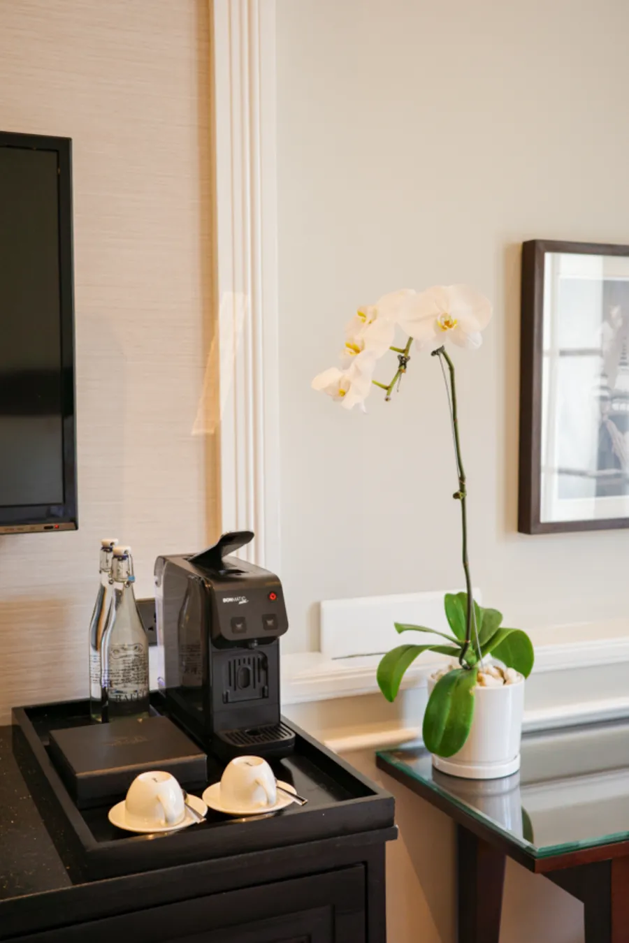 The beds were exceptionally comfortable, ensuring restful nights throughout my stay. A large desk provided ample workspace for those traveling on business. The coffee and tea station came equipped with a proper coffee machine and capsules, not just an electric kettle, a nice touch that elevates the experience.